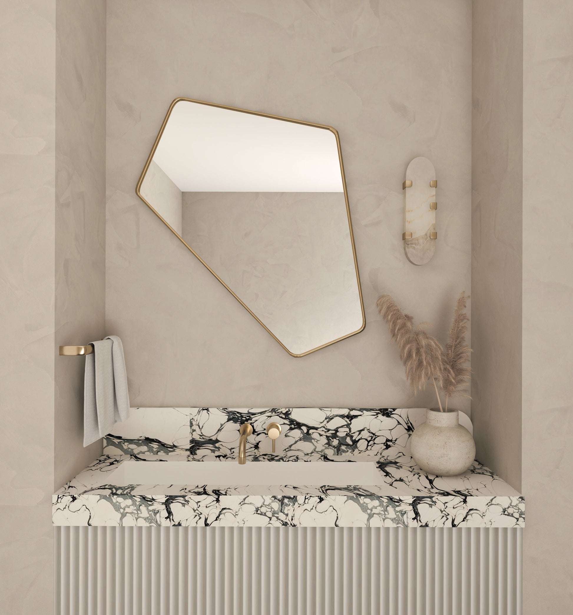 Asimetrik ve Benzersiz Tasarım: Bu ayna, hafif kavisli bir kenara sahip asimetrik bir tasarıma sahiptir, bu da ona modern ve şık bir görünüm kazandırır. Düzensiz şekil ve benzersiz dokular, herhangi bir odaya derinlik ve karakter katar.