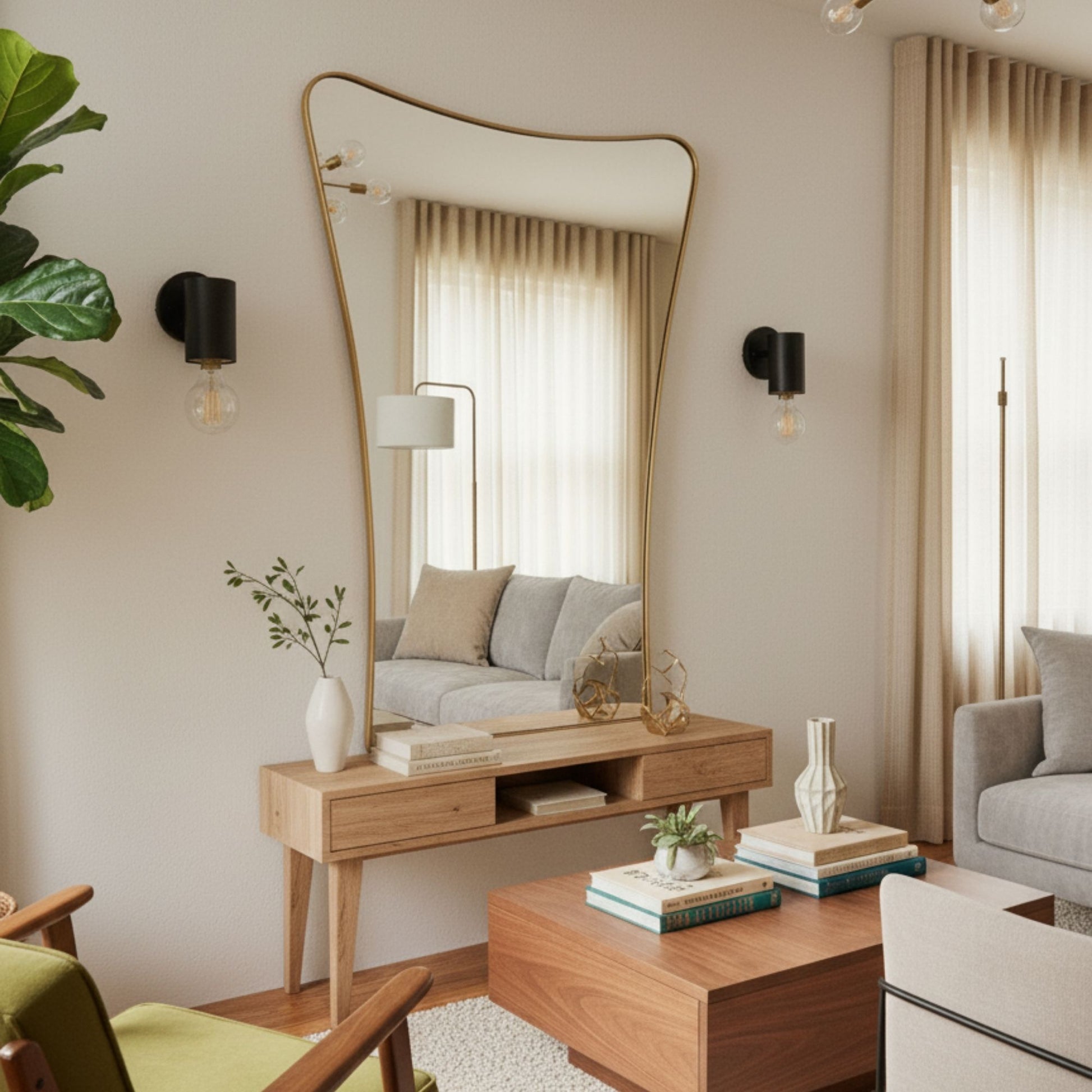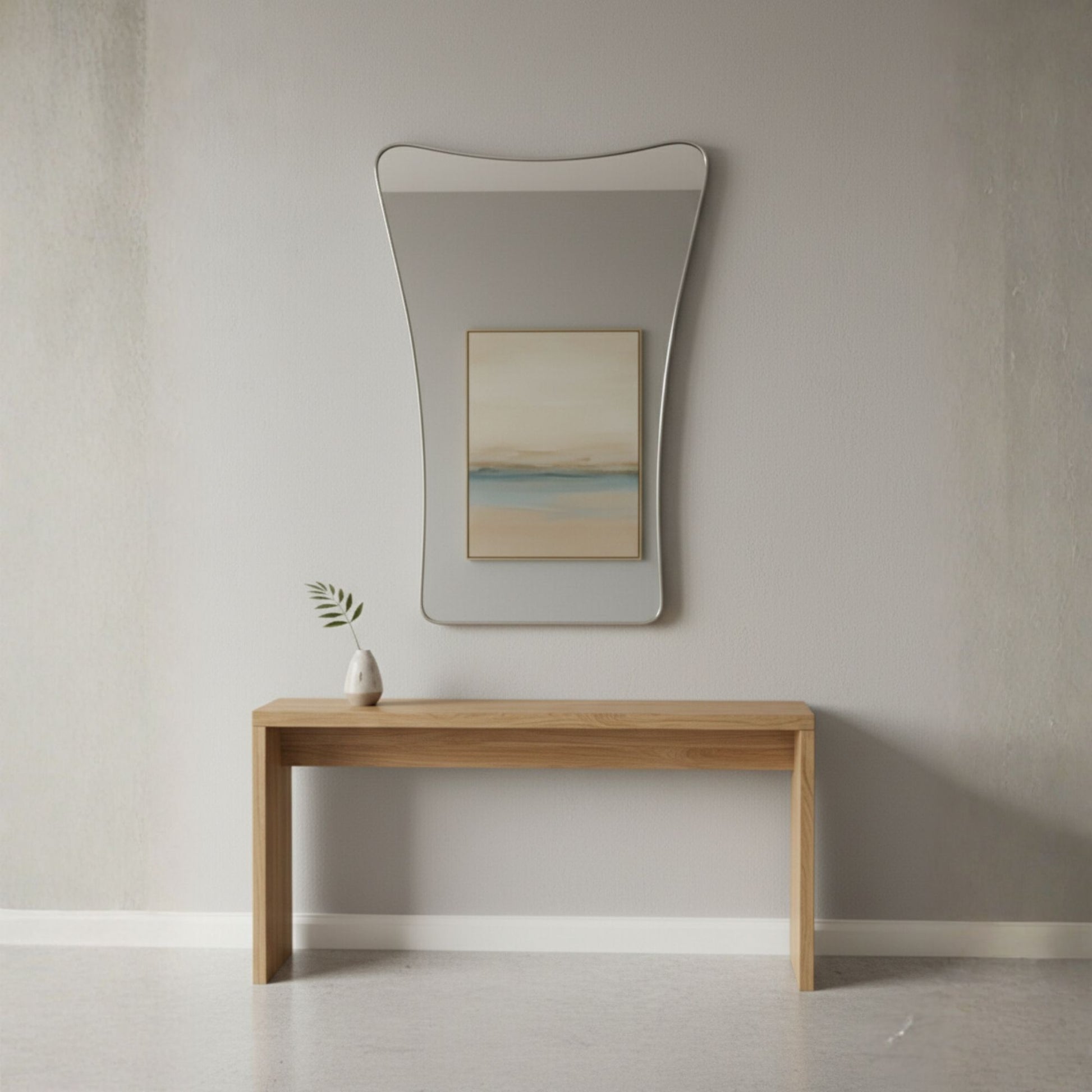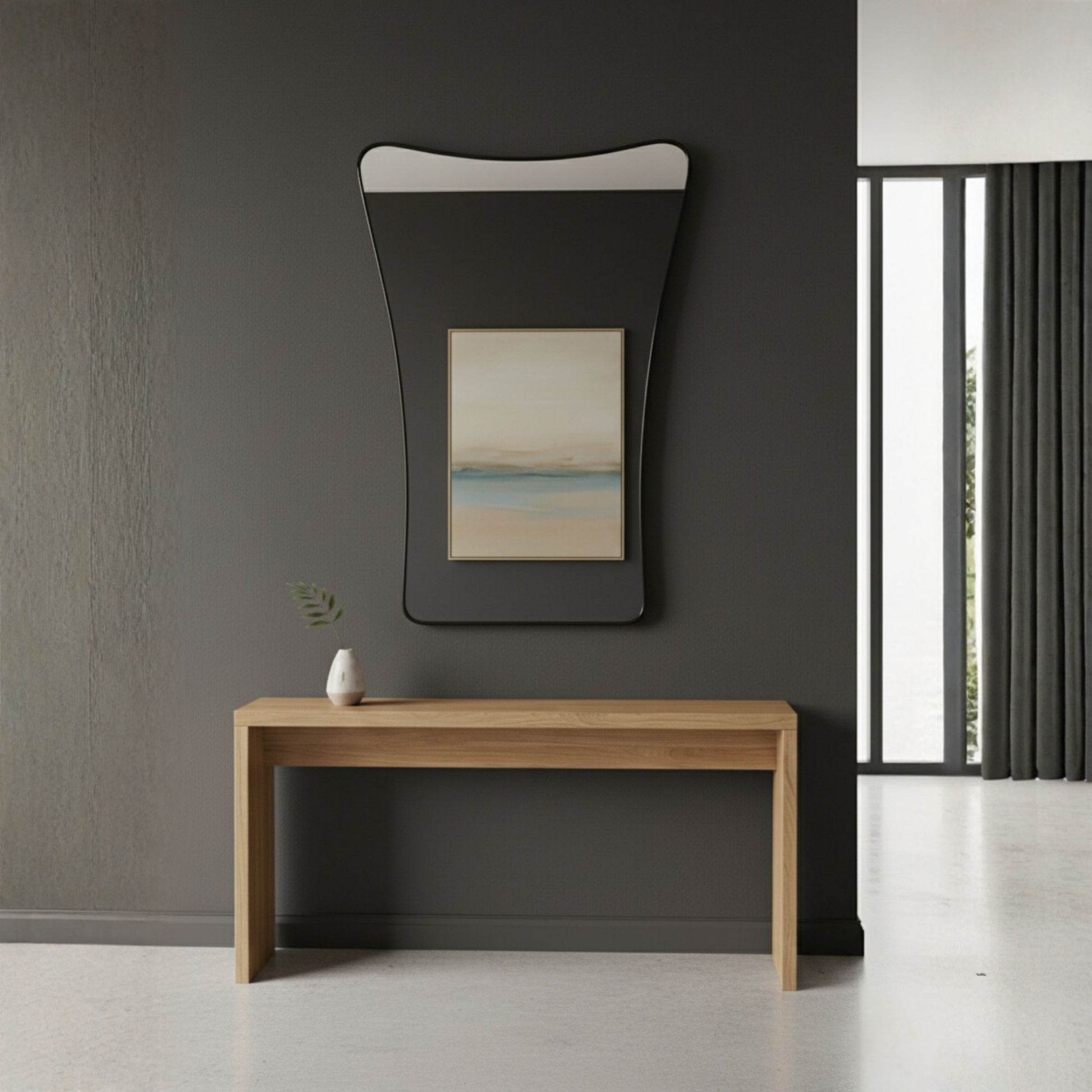 Asimetrik ve Benzersiz Tasarım: Bu ayna, hafif kavisli bir kenara sahip asimetrik bir tasarıma sahiptir, bu da ona modern ve şık bir görünüm kazandırır. Düzensiz şekil ve benzersiz dokular, herhangi bir odaya derinlik ve karakter katar.