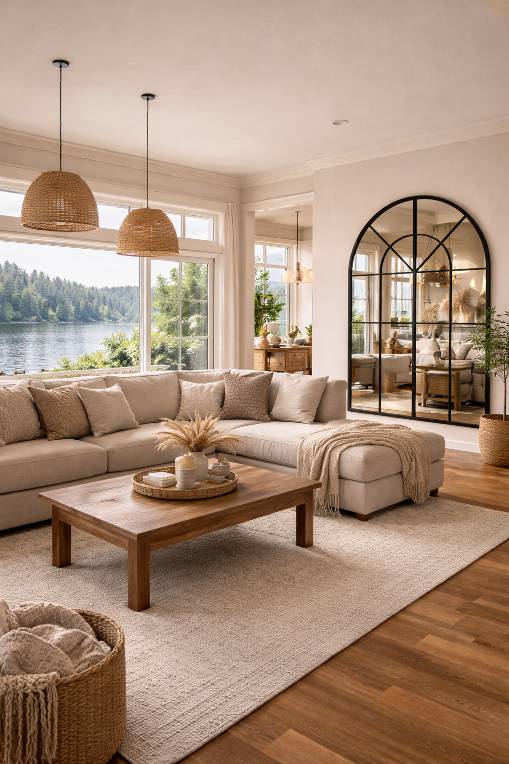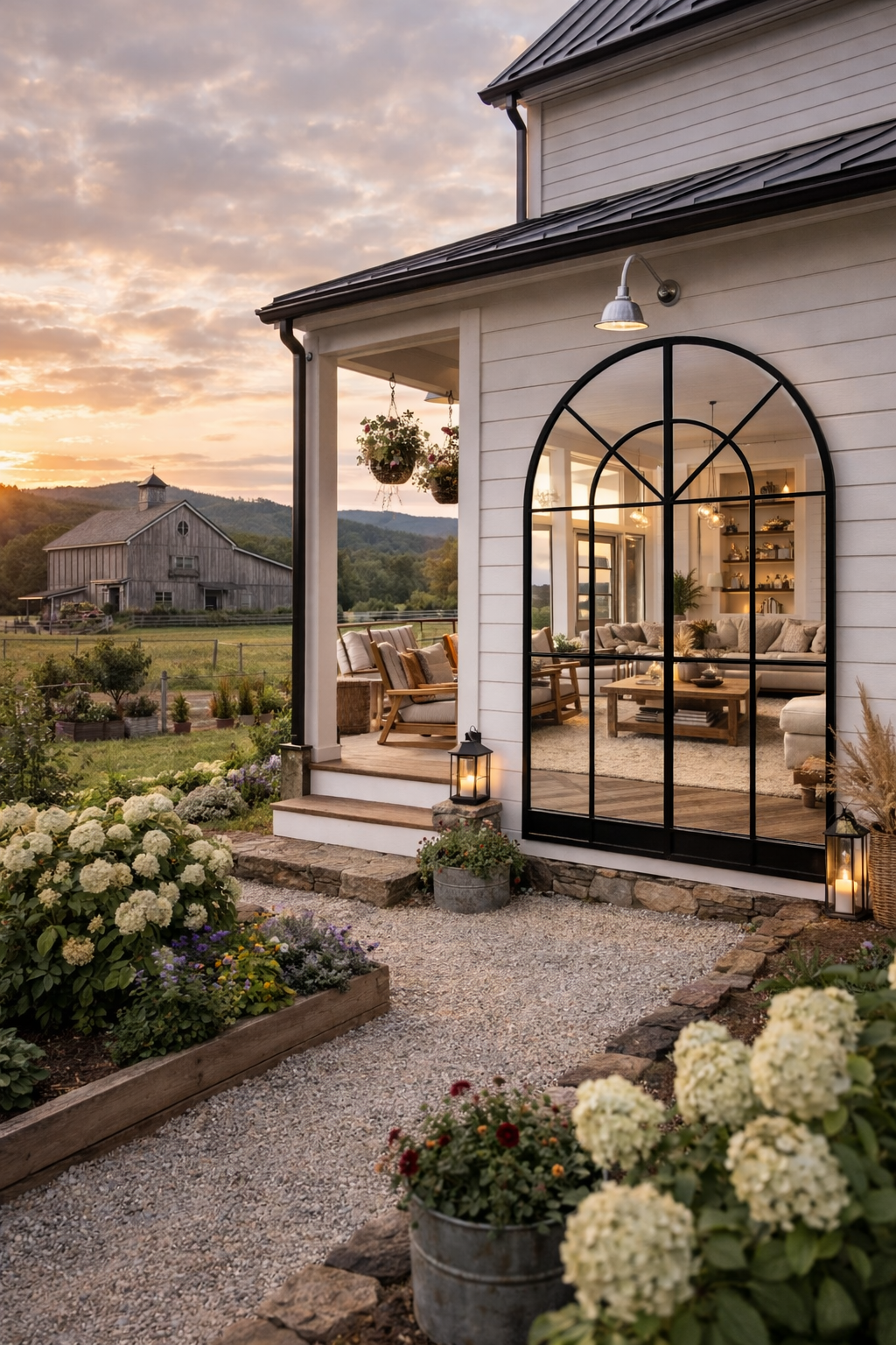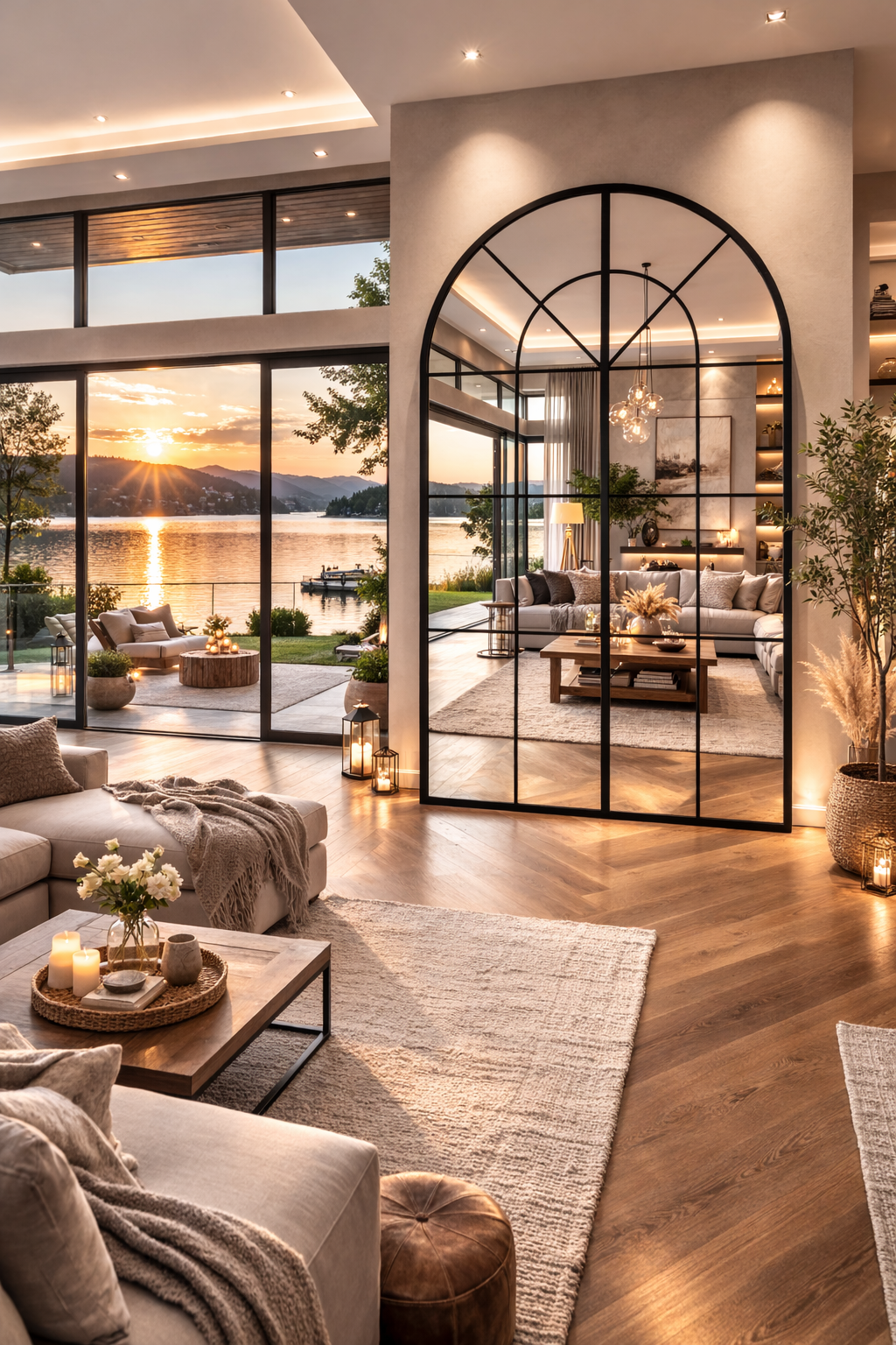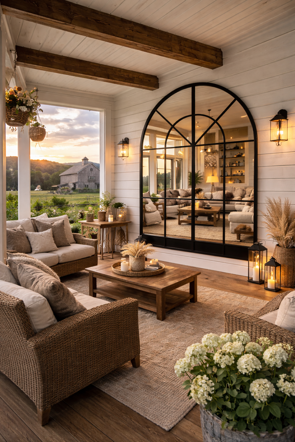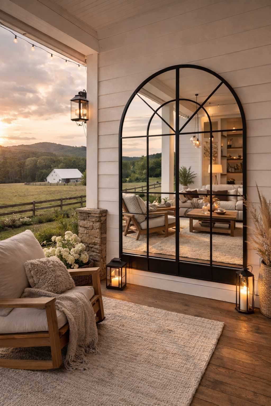 Büyük Formlu Kemerli Pencere Duvar Aynası - Çiftlik Evi Aynası